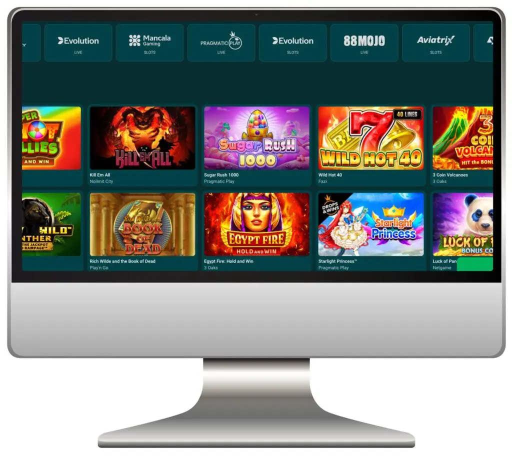يمتلك 22Bit مكتبة ضخمة تضم أكثر من 3,000 لعبة، وهو رقم يتجاوز بكثير المتوسط الموجود في معظم الكازينوهات المنافسة. ستجد تنوعاً كبيراً في أنواع الألعاب: سلوتس من NetEnt وPlay’n GO وEGT، ألعاب طاولة تقليدية مثل البلاك جاك والروليت، وألعاب موزع مباشر من Evolution Gaming وEzugi. تجربة الألعاب الحصرية من 22Bit أضافت لنا متعة خاصة، خصوصاً مع وجود طاولات موزع مباشر تدعم اللغة العربية—ميزة لا تتوفر بسهولة في معظم الكازينوهات المنافسة مثل FortunePlay أو LuckyWins.