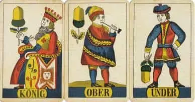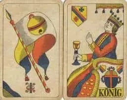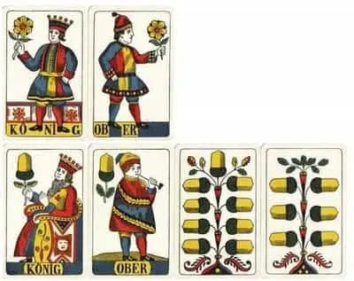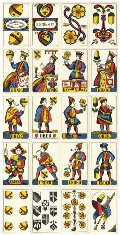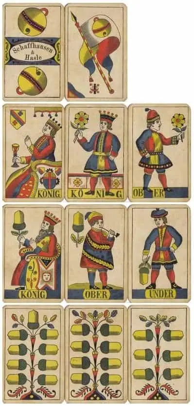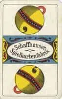 التغيير الوحيد عن الإصدار السابق (بصرف النظر عن الشكل) هو أنه في آيس بيل يمكنك الآن قراءة معلومات الشركة المصنعة التي تم تغييرها شافهوزر سبيل كارتين فابريك "Schaffhauser Spielkartenfabrik". هذه هي آخر بطاقات اللعب ذات النمط السويسري التي تمت طباعتها. وبالفعل ، فإن البطاقات المزدوجة الوجوه مثبتة جيدًا ، وما هي إلا مسألة وقت حتى يتخلى مولر عن الإنتاج ويبيع أنماطًا سويسرية مزدوجة الوجوه فقط.